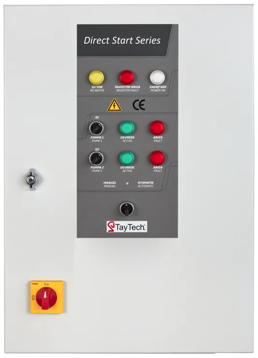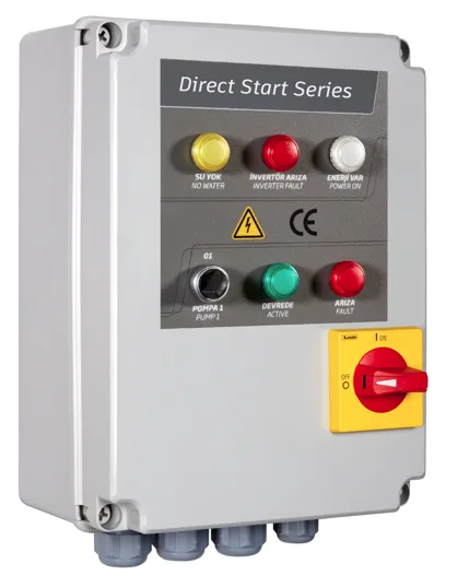 Doğrudan yol verme metoduna sahip, 1 veya 3 faz motorları 4 pompaya kadar aynı anda sürebilen kontrol paneli. Temiz su ve pis su uygulamalarındaki doldurma, boşaltma ve basınçlandırma işlemleri için tasarlanmıştır.
