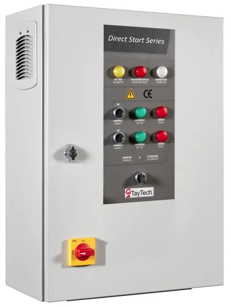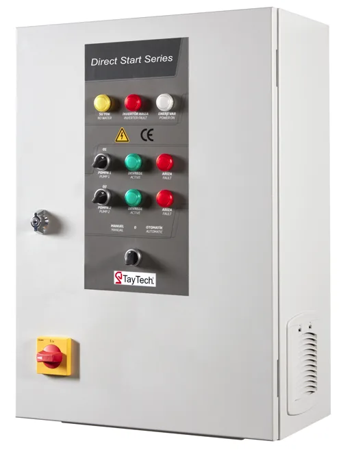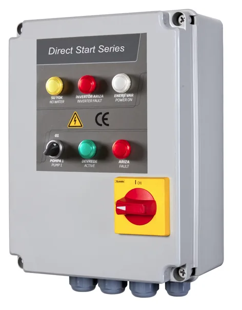 Doğrudan yol verme metoduna sahip, 1 veya 3 faz motorları 4 pompaya kadar aynı anda sürebilen kontrol paneli. Temiz su ve pis su uygulamalarındaki doldurma, boşaltma ve basınçlandırma işlemleri için tasarlanmıştır.