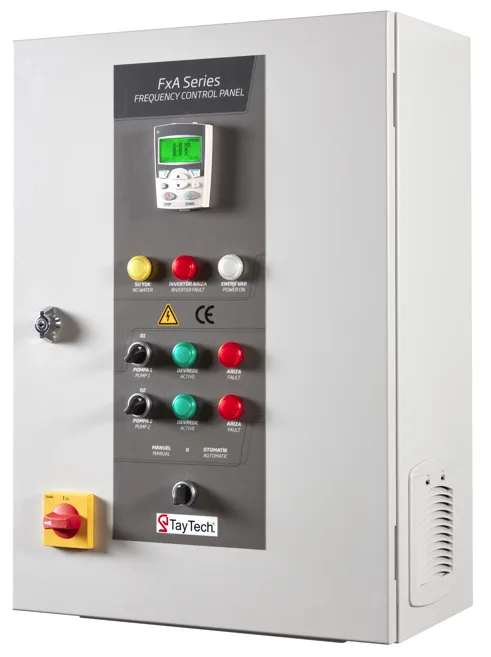 - 1 veya 3 fazlı motorlarda 4 pompaya kadar aynı anda kontrol edebilen yıldız üçgen yol vermeli kontrol paneli. (Temiz su ve pis su uygulamalarındaki doldurma, boşaltma ve basınçlandırma işlemleri için).